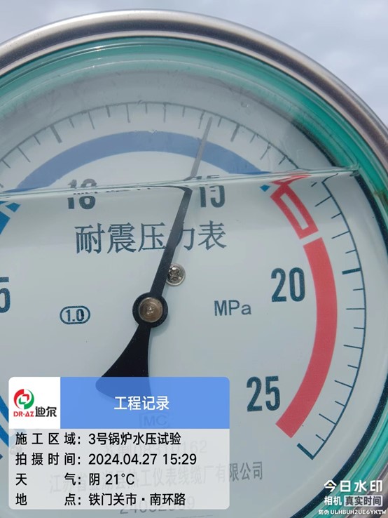 2024年4月27日15時(shí)29分,由迪爾集團(tuán)有限公司第一公司承建的新疆新冀能源循環(huán)經(jīng)濟(jì)聯(lián)合化工項(xiàng)目3#爐水壓試驗(yàn)一次成功。